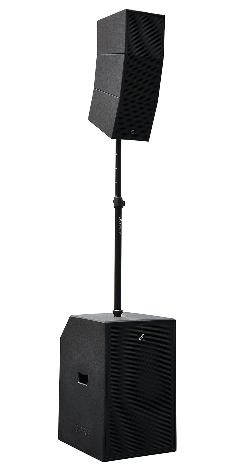 Cualquier sistema PA porttil moderno necesita producir agudos claros y graves impactantes. El sistema CORE no es una excepcin. El subgrave activo sintonizado es un diseo de fase invertida de bass reflex que incorpora un impresionante mdulo amplificador de 700W + 400W capaz de proporcionar potencia al sub y al sistema de matriz curvo. El gabinete de madera est hecho con los ms altos estndares con un acabado de pintura duradero y manijas grandes y fciles de agarrar. Con el CORE151 de 15″ ocupando un espacio mnimo de piso de solo 485 x 585 mm, el sistema encajar prcticamente en cualquier escenario o lugar. Adems del amplificador de potencia y la fuente de alimentacin conmutada, el subgrave tambin alberga el panel de control en ngulo, por lo que es fcil de conectar, configurar y operar durante un evento. La matriz de curvas se conecta a travs de los sockets top-hat especialmente diseados, que se utilizan no solo para espaciar el arreglo curvo a la altura correcta, sino tambin para pasar la seal de audio a travs del poste a la matriz de curvas sin necesidad de cables.