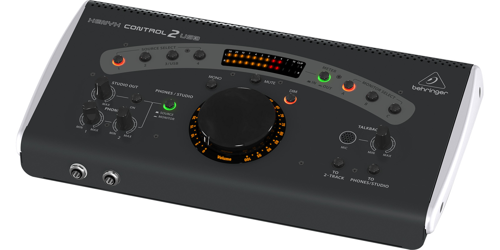- Medidores VU de entrada y salida.