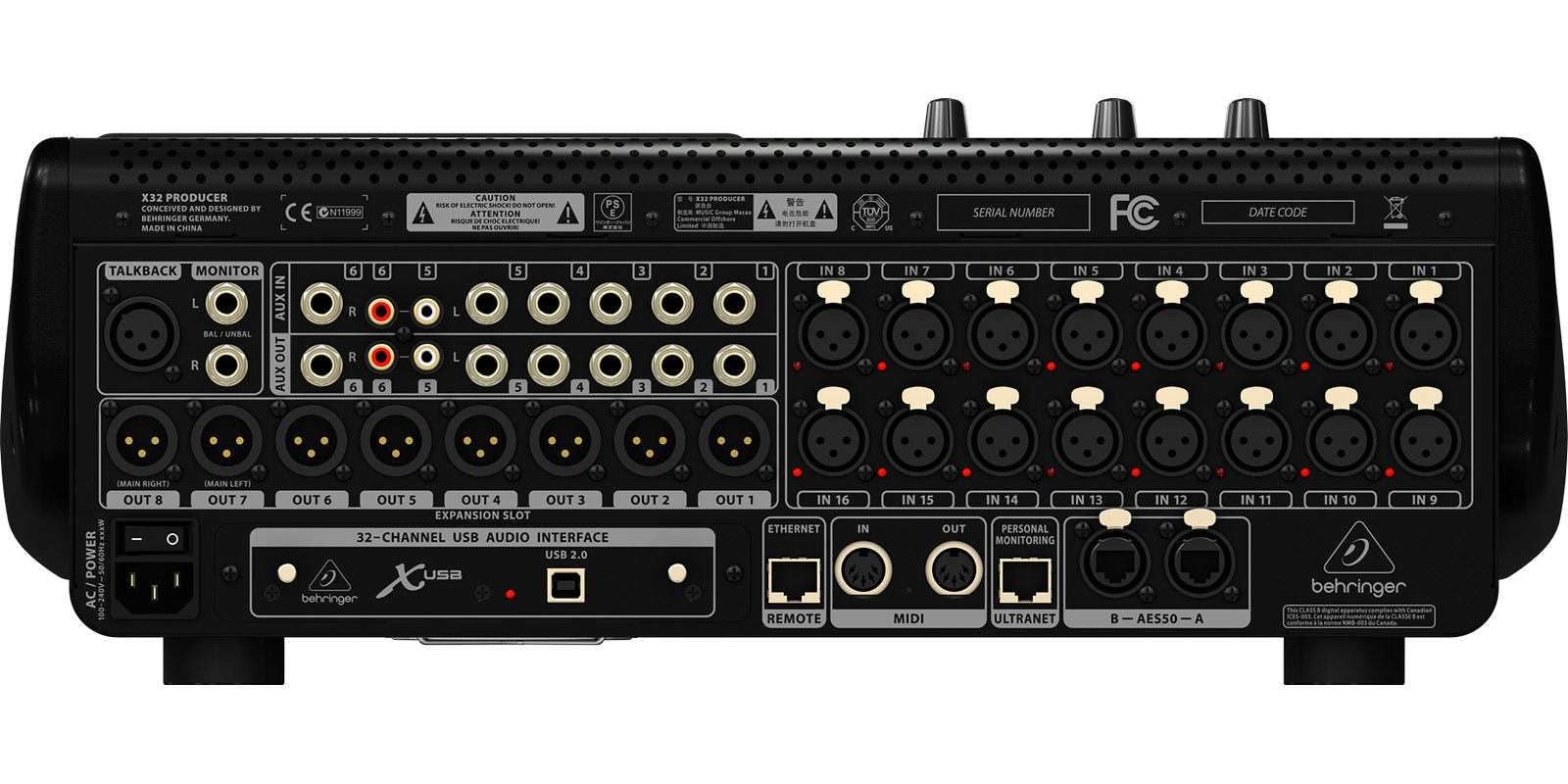 La mezcladora digital X32 de Behringer establece un nuevo punto de referencia en cuando a audio en vivo, mezclando con un valor sin precedentes. Behringer ofrece una mezcladora con todas las funciones de mezcla digital con un gran aporte y nmero de canales de salida, procesamiento exhaustivo, opciones flexibles de expansin e interfaz de usuario intuitiva, todo a un precio asequible para cualquiera. La versin PRODUCER es ms pequea que la X32 normal y est recomendada para aplicaciones de estudio, cuenta con 40 canales de entrada (32 entradas), 25 buses, 16 preamps Midas programables, 17 faders motorizados de 100 mm que permiten la visin instantnea, un poderoso manejo de escena y control DAW, 8 salidas XLR y 6 entradas de lnea/salidas adicionales, 2 conectores de audfono y seccin de talkback con entrada de micrfono XLR, interface de audio USB 2.0 de 32 canales con control remoto DAW emulando controles HUI y Mackie y control remoto por medio de iPad o iPhone que no requiere una PC host, TFT de 5″ de alta resolucin que permite la fcil visualizacin de los parmetros y componentes de flujo de trabajo a plena luz del da, LCR principal, 6 buses de matriz y 16 buses de mezcla, cada uno cuenta con insertos, ecualizador paramtrico de 6 bandas y procesamiento dinmico completo, ms 8 DCA y 6 grupos Mute, rack de FX virtual que cuenta con 8 slots true-stereo e incluye simulaciones de alta gama, como el Lexicon 480L, PCM70, EMT250 y Quantec QRS, entre otros, DSP de 40 bits de punto flotante que cuenta con rango dinmico ilimitado sin sobrecarga interna y latencia cerca de cero (0.8 ms) para mezclar un total de 48 seales en 25 buses, gestin de escenas de gran alcance para un cmodo manejo de producciones complejas, snake digital de 48 canales a travs de puertos AES50, que cuentan con capacidad de red Klark Teknik’s SuperMAC para una latencia ultra baja y bajo jitter, conector USB tipo A para almacenamiento de archivos y grabaciones estreo sin comprimir, y presets de show y actualizaciones del sistema, seccin de canal dedicado y fcil de usar con controles de acceso directo e interfaz grfica de usuario para el flujo intuitivo de trabajo, seccin de control adicional definible por el usuario para realizar ajustes sobre la marcha de los parmetros preferidos, conectividad Ultranet para sistema de monitoreo personal Behringer P-16 y salida de estreo digital AES/EBU y MIDI, control remoto en red para mostrar configuraciones con el editor de software en la pantalla a travs de Ethernet, incluye puerto de expansin para interfaces de audio o puenteo de red digital y actualizaciones de firmware que incluyen nuevos plugins descargables desde la pgina oficial de Behringer de forma gratuita.
