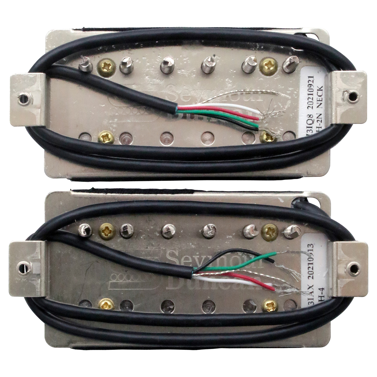 Seymour cre esta combinacin clsica de humbucker mientras estaba en Inglaterra en 1974 y sigue siendo su set favorito de pastillas hasta el da de hoy: Una SH-4 JB para el puente y una SH-2n Jazz Model para el brazo. Juntas, estas pastillas se han convertido en uno de los sets de humbucker ms atemporales y verstiles jams construidos. El humbucker JB Model es nuestra pastilla ms popular de todos los tiempos. Agrega jugo y versatilidad a la posicin del puente de cualquier guitarra equipada con humbucker. Con sus hot coils e imn de alnico 5, esta pastilla ofrece un inconfundible ataque de rango medio superior, un low-end apretado y articulado y agudos armnicamente ricos que realmente cantan. La JB es una pastilla de puente perfecta para cualquier cosa, desde blues y country hasta hard rock y metal. El humbucker Jazz Model para brazo utiliza un imn de alnico 5 y un bobinado especial para una respuesta vidriosa y articulada de agudos que se equilibra muy bien con su completo pero ajustado low-end. El rango medio recortado le da a esta pastilla un carcter tonal suave propio. Originalmente diseada como la pastilla de brazo a juego para la pastilla de puente JB Modelo, la Jazz es una pastilla humbucker increblemente verstil que funcionar con casi cualquier estilo de msica. El modelo Jazz Model ha sido utilizado por muchos grandes msicos a lo largo de las dcadas, desde Randy Rhoads hasta Jeff Beck a Seymour W Duncan. Fabricadas a mano en nuestra fbrica de Santa Brbara, California, estas pasillas humbuckers utilizan un imn de alnico 5, una placa inferior de nquel plateado, un cable de 4 conductores para mltiples opciones de cableado y estn encapsuladas en cera al vaco para un rendimiento sin chirridos.