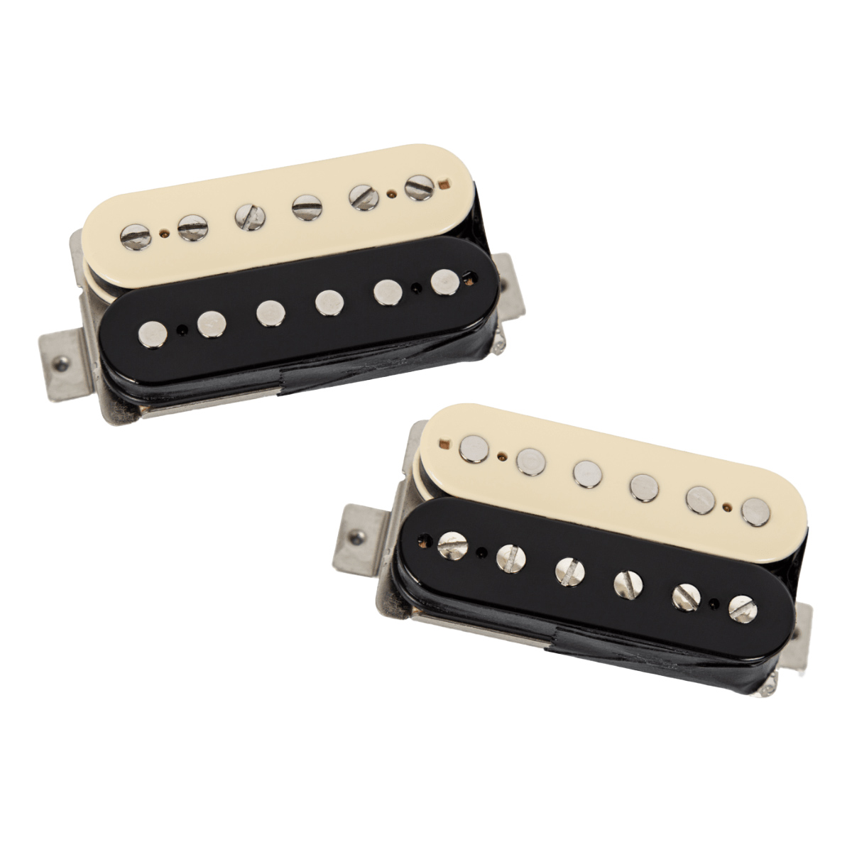 El juego de humbucker exclusivo de Slash, el conjunto Slash 2.0 se basa en sus pastillas APH-2 exclusivas, ahora con un viento ms clido que proporciona el equilibrio perfecto de volumen, impulso y compresin gracias a una pastilla Humbucker de posicin en Mstil y Puente para guitarras de 6 cuerdas con imn de Alnico 2, DCR: Mstil 8.8k y Puente 9.38k y Cable de 1c blindaje trenzado, tipo Pasivo, color Crema/Negro y Sin Cubierta.