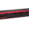 Entrada de micrfono:Preamplificador discreto de micrfono.Tipo: conector combo XLR/TRS balanceado.Impedancia: 4 kilo-ohms.Nivel de entrada mximo: +17 dBu.Nivel de ruido de entrada equivalente (EIN): -126 dBu, 20 Hz – 20 kHz, 150 ohms.Line in:TRS 1/4″ balanceado.Impedancia: 10 kilo-ohms desbalanceado, 20 kilo-ohms balanceado.Nivel de entrada mximo: 30 dBu.Insert return:TRS 1/4″ balanceado.Impedancia: 5 kilo-ohms.Nivel de entrada mximo: +21 dBu.