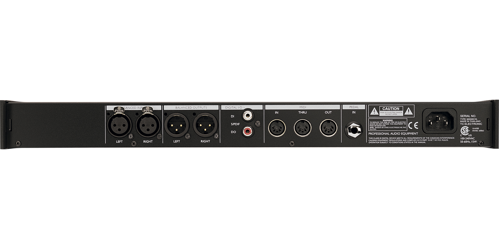 Reverb de saln, reverb de habitacin, pequea habitacin, lminas 1&2, muelles, directo, ambientacin, retardo de una fase, retardo de dos fases, retardo PingPong, chorus clsico y 4 voces, flanger: clsico y 4 voces, tono: desafinacin y cambio de tono, EQ paramtrico, compresor/Limitador, puerta de ruidos / expansor, de-esser, tremolo, modulador de fase.