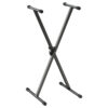 Soporte profesional en X para teclado, adecuado para sintetizadores, controladores MIDI, pianos digitales en estudio o presentaciones en vivo, gomas ajustables que absorben los golpes para proteger tu instrumento y proporcionar un agarre estable, ajuste preciso de 50.8 a 96.52 cm, pasador de bloqueo de liberacin rpida para un ajuste seguro de la altura y el ancho, servicio pesado con hasta 20 kg de carga mxima, diseo liviano para un fcil transporte y almacenamiento, peso: 2.8 kg.